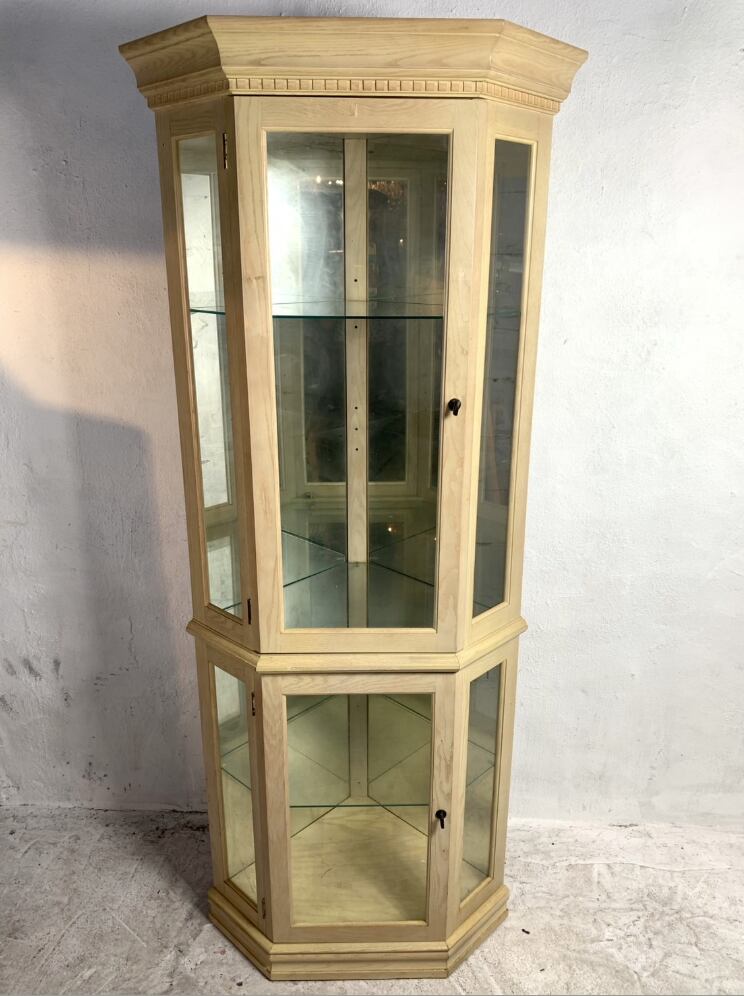 お部屋の角を有効活用できる北欧ナチュラル風コーナーキャビネット(キュリオケース)。