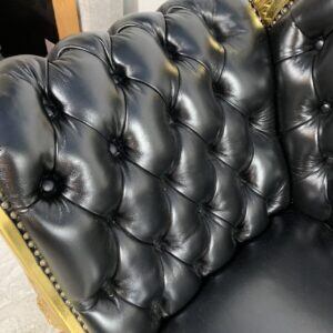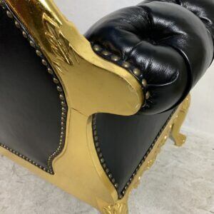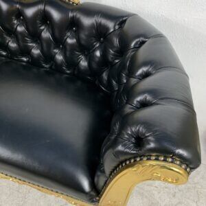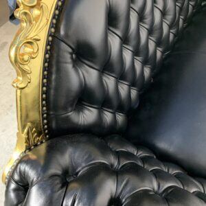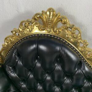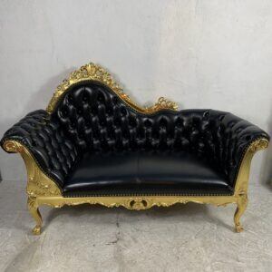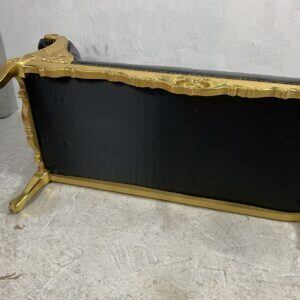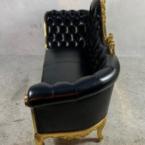 豪華なゴールドフレームと深みのあるブラックレザー調張りが目を引くロココ調2人掛けソファです。