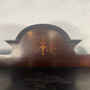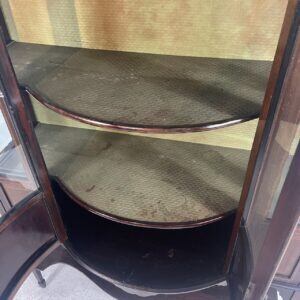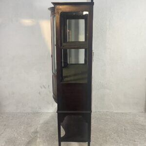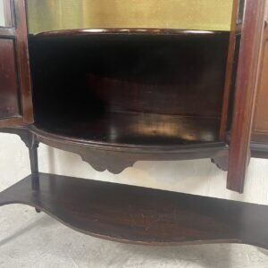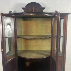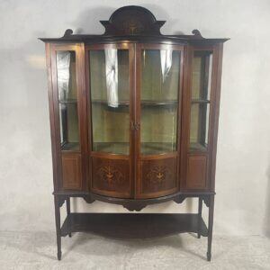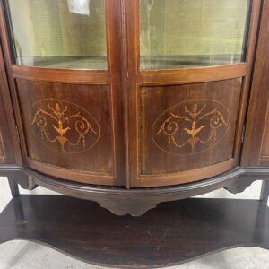 優雅な曲線と繊細な象嵌細工が美しい、アンティークディスプレイキャビネットです。