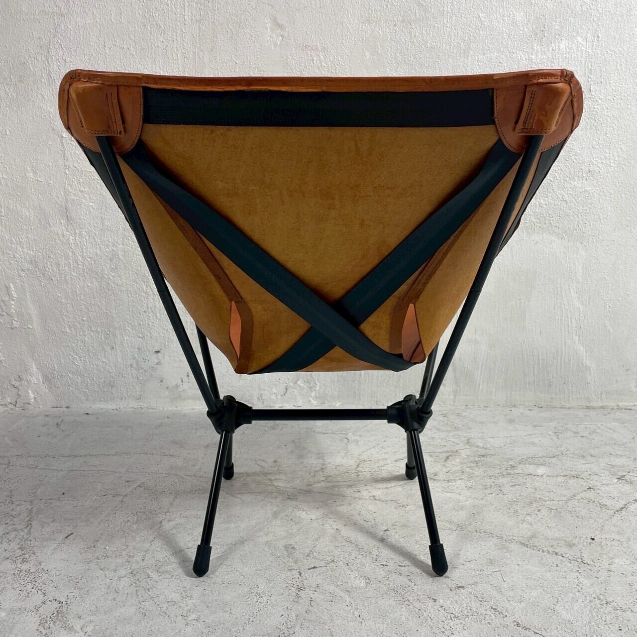 アウトドアブランド Helinox(ヘリノックス) の折りたたみ式レザーアウトドアチェアです。