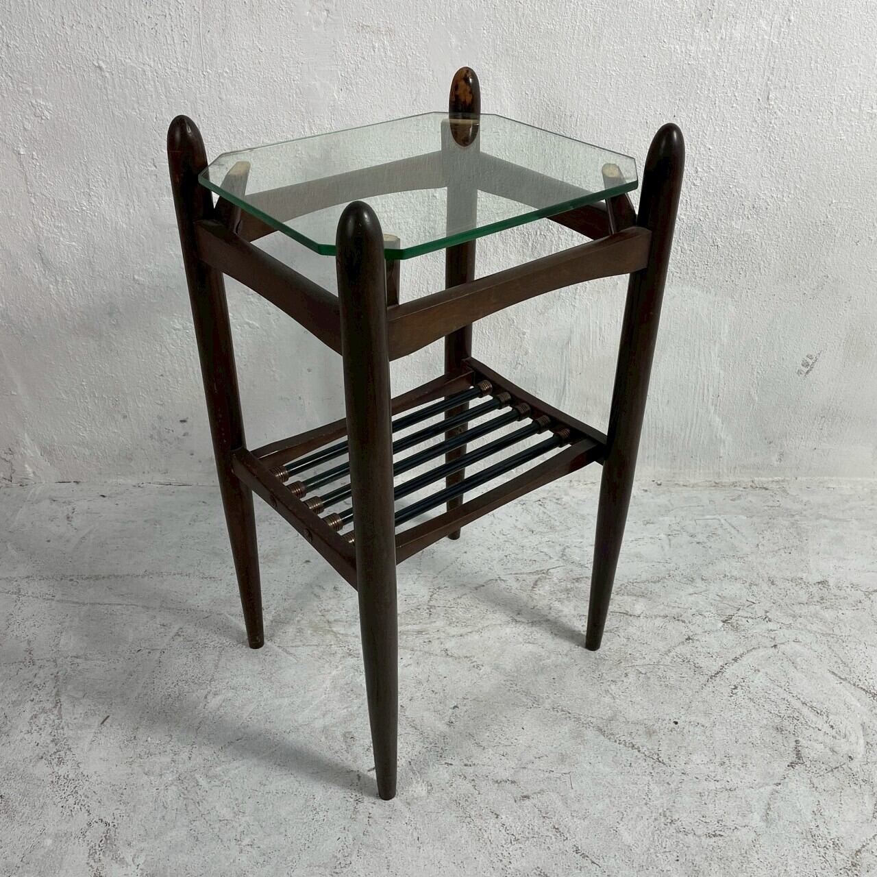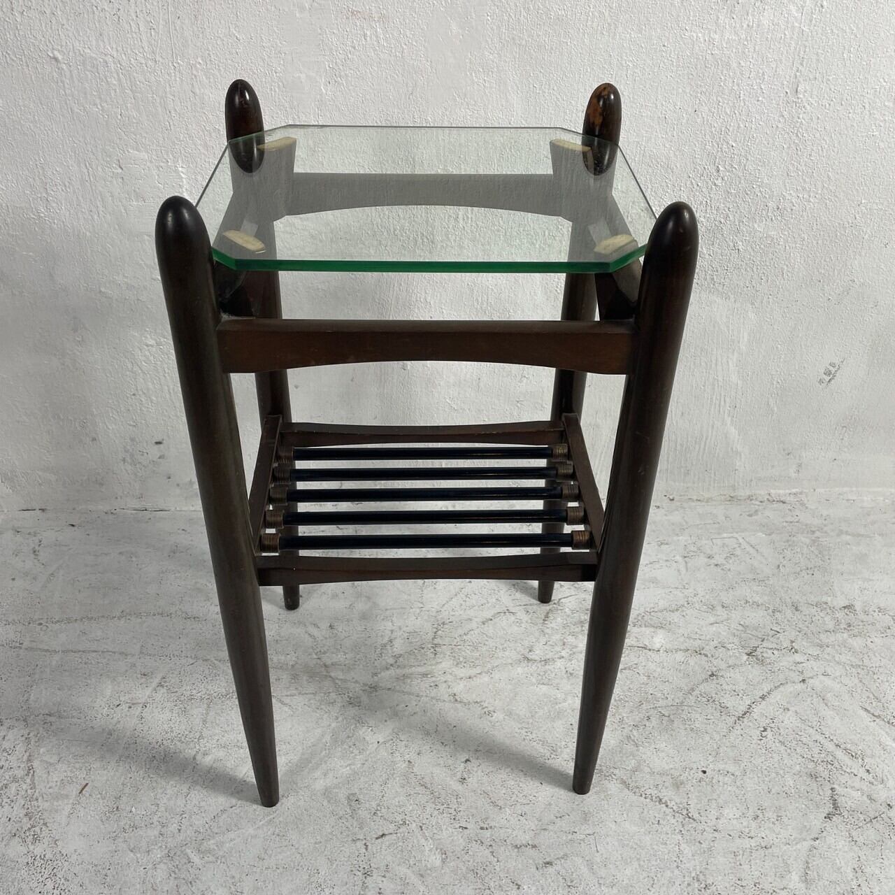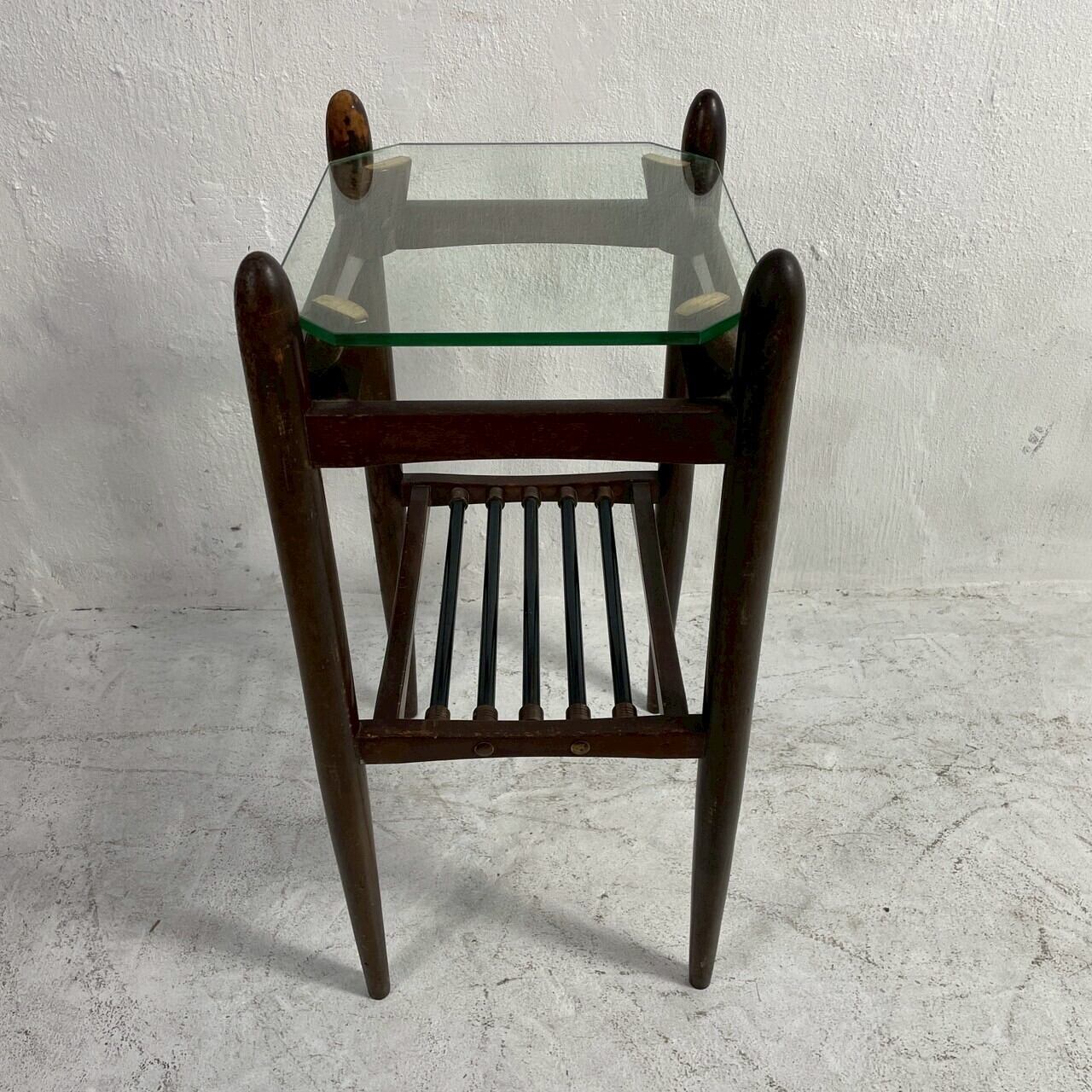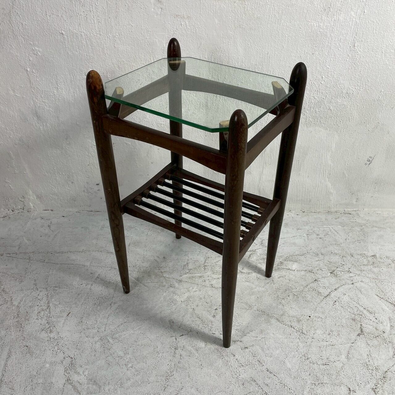ミッドセンチュリーの雰囲気漂うガラス天板のヴィンテージサイドテーブルです。