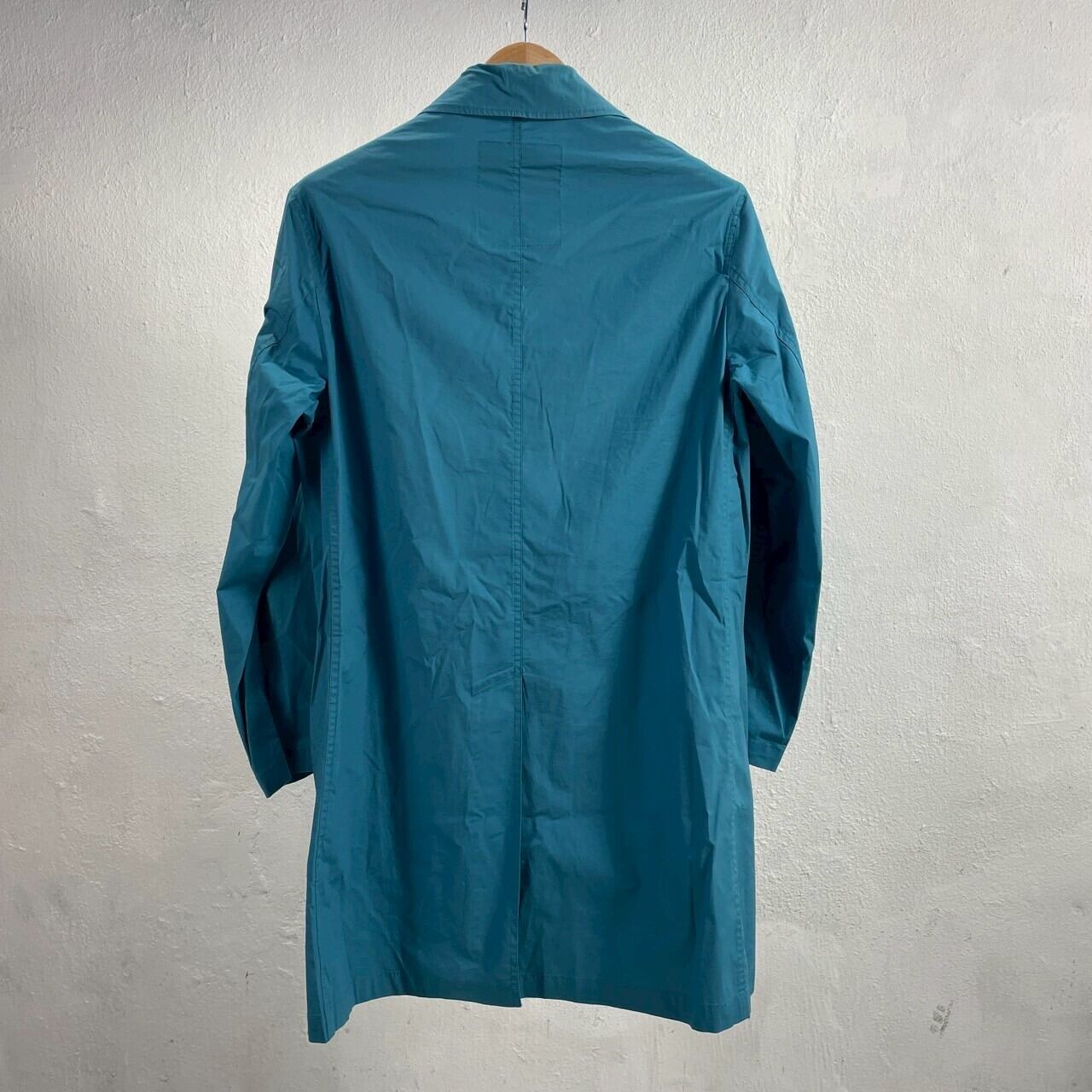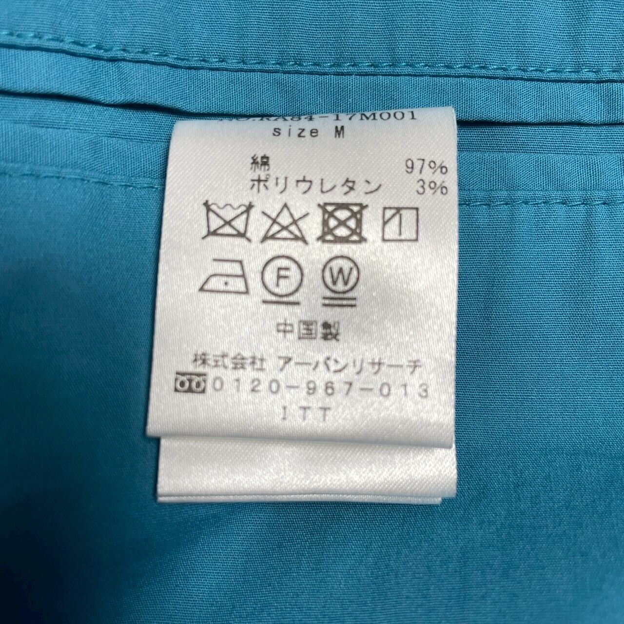 鮮やかなターコイズブルーが印象的な一着で、シンプルながらも洗練された雰囲気を演出します。