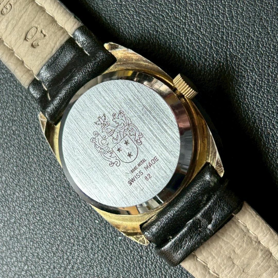 スイス製のムーブメントを搭載し、ジャンプアワー式のユニークな表示が特徴。