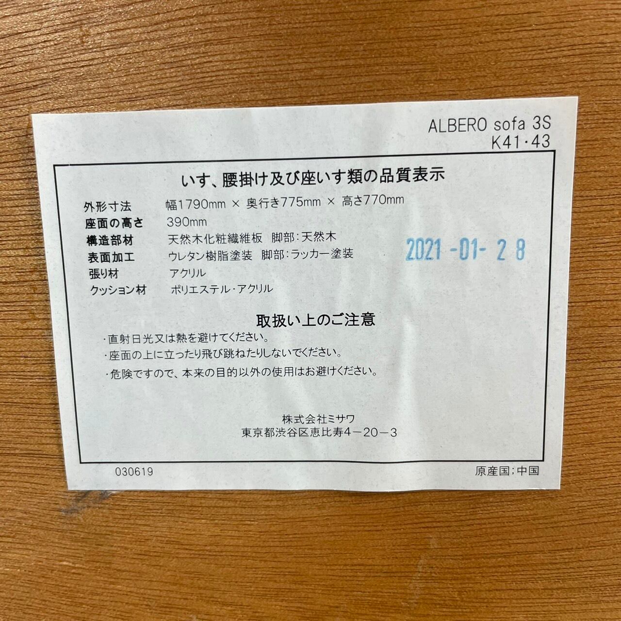 ALBERO(アルベロ) 3人掛けソファ の出品です。